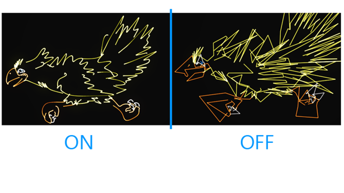 Real laser scanners or so-called galvanometers are physically limited in speed, because of their mass. For that reason, laser graphic designers need to balance between the scan rate and image complexity to avoid flickering while keeping the image correct. Since this can be a challenge, Depence can simulate this behavior correctly to offer laser graphic designers the most perfect visualization.